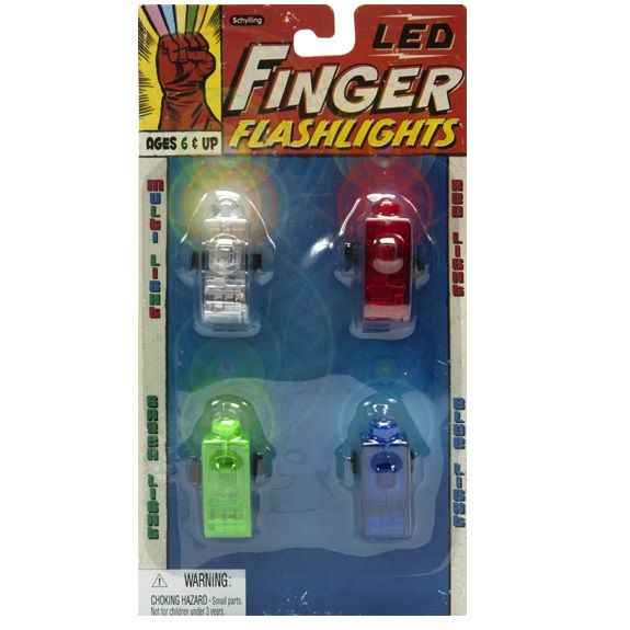 Better than ever, our finger flashlights have LED power! Light up the night with these multi colored lights. Useful for work and fun for play these super bright, long-lasting, and colorful LED Finger Flashlights will entertain both kids and adults! Simply hook and loop the Velcro strap over your fingers, pencils, pens and let the light time fun begin! Available in assorted colors. Measures 4.25 x .87 x 7.75 in pkg.